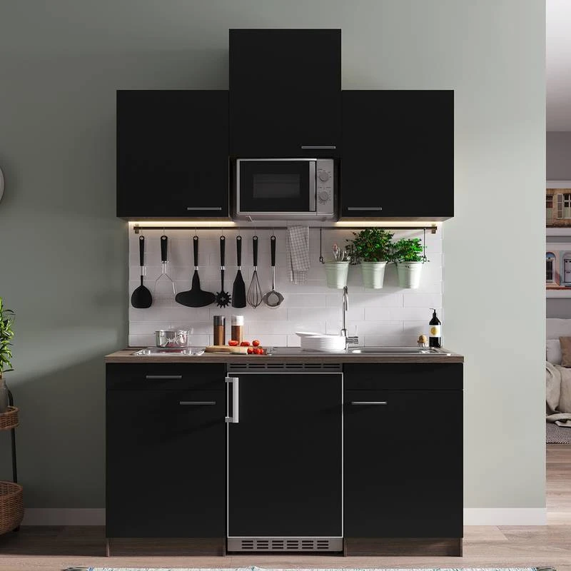 - Électroménager inclus : 1 réfrigérateur encastrable, 1 micro-ondes et 1 plaque de cuisson vitrocéramique