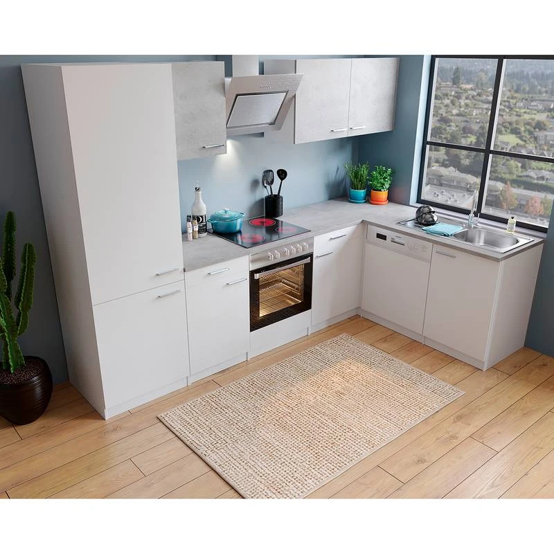 - Électroménager inclus : 1 four encastrable et 1 plaque vitrocéramique, 1 lave-vaisselle encastrable, 1 réfrigérateur / congélateur encastrable et 1 hotte aspirante inclinée