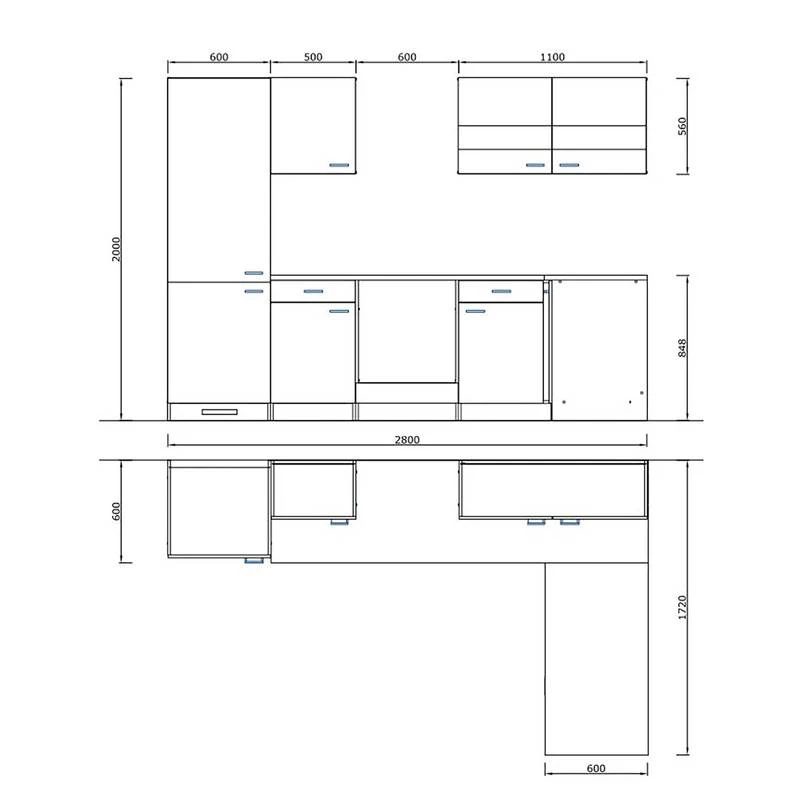 - 1 meuble bas d’angle de 110 cm (dont 95 cm utilisables)