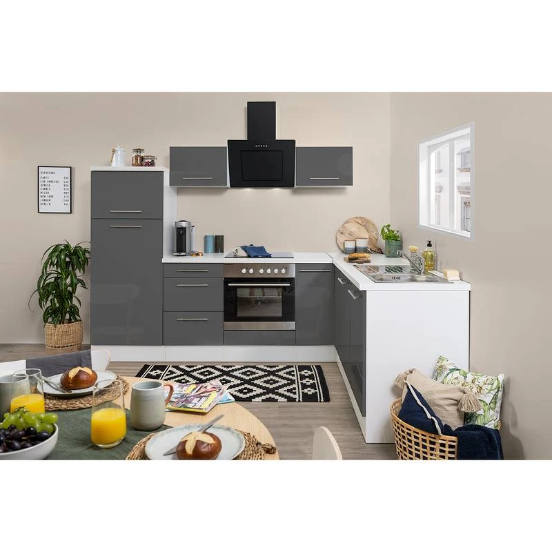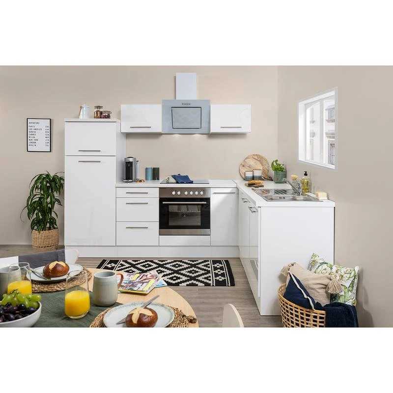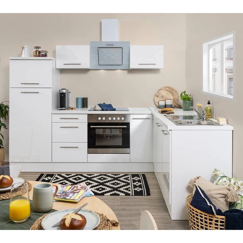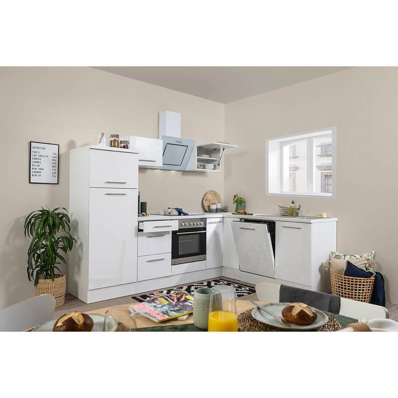 - Électroménager inclus : 1 combiné réfrigérateur / congélateur, 1 hotte inclinée, 1 four et 1 plaque de cuisson vitrocéramique, 1 lave-vaisselle encastrable