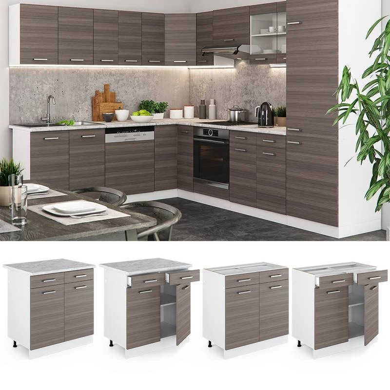 - Contenu de la livraison : Contenu de la livraison • Meuble de cuisine en kit Remarque: L’électromenager et la décoration ne sont pas incluses.