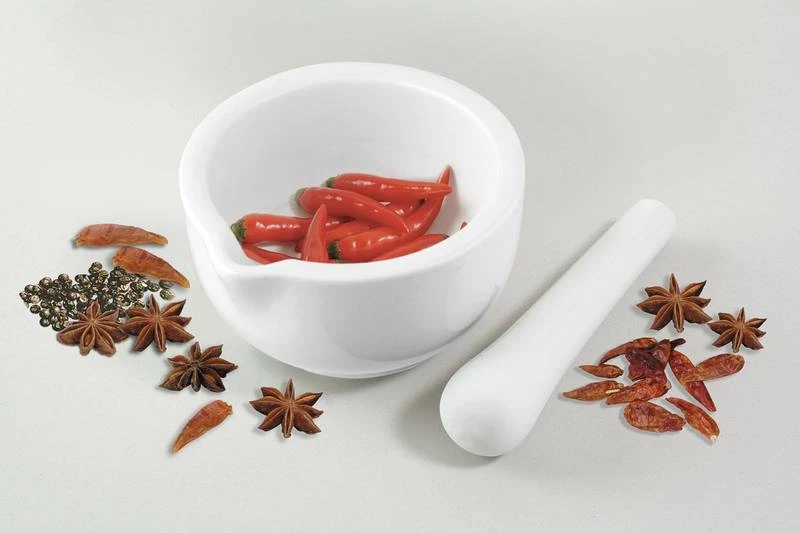 - Autres caractéristiques : LE PETIT + : Le bec verseur de ce mortier est très utile pour verser vos herbes ou epices fraîchement écrasées sur vos préparations culinaires ou dans un récipient de conservation ; ce mortier est à fond plat pour une bonne stabilité