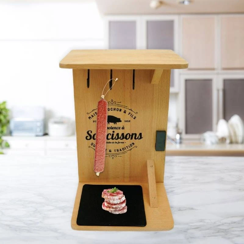 - Autres caractéristiques : LE PETIT + : Il est possible d’accrocher votre couteau à saucisson au support, grâce à l’aimant accroché sur la planche en bois, vous pourrez donc à tout moment découper et déguster votre saucisson