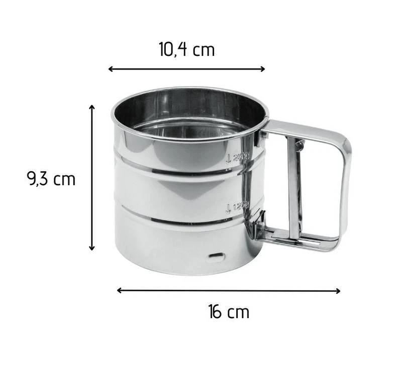 - Autres caractéristiques : LE PETIT + : Grâce à ce tamis de cuisine vous pourrez remuer votre préparation tout en y incorporant de la farine tamisée ou toute autre poudre alimentaire.